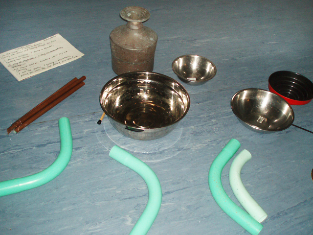 We explored the sounds that can be made just with our own bodies and built up rhythms. We did Baka type percussion using just our hands slapping the surface of the water.